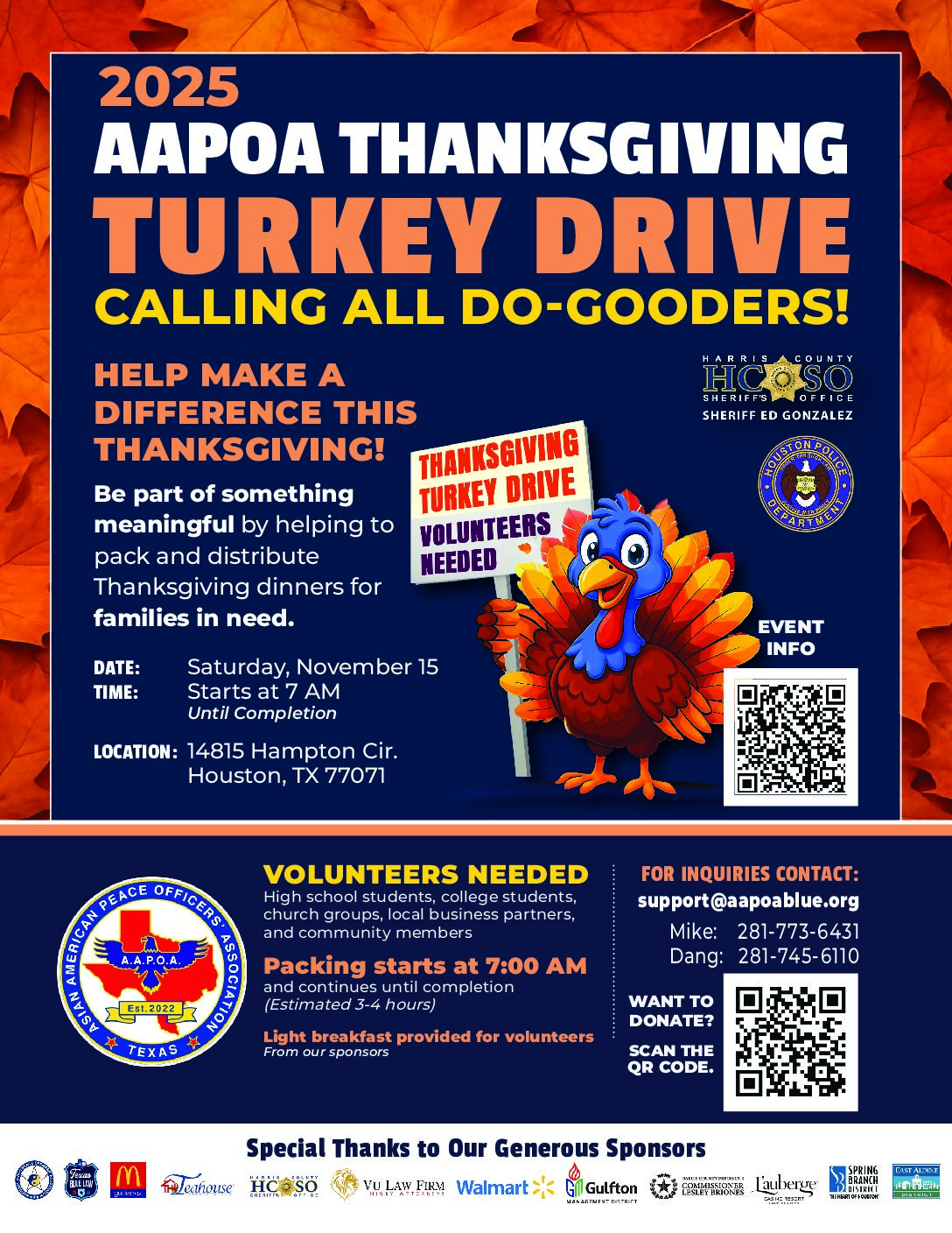 HCSO Mission Bend Storefront 7043 Highway 6 South, Houston, TX, United StatesJoin the Asian American Peace Officers Association (AAPOA) and the Harris County Sheriff’s Office for this year’s FREE Trunk or Treat event! 🗓 Wednesday, Oct. 29 🕡 6:30 PM – […]